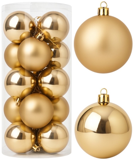 Oferujemy piękny zestaw bombek choinkowych, który składa się z 15 sztuk o średnicy 8 cm.