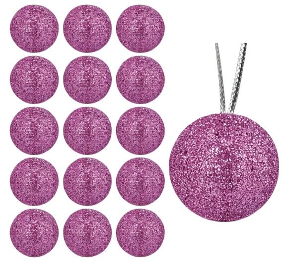Bombki choinkowe brokatowe ozdoby świąteczne 2,5cm 18szt różowy