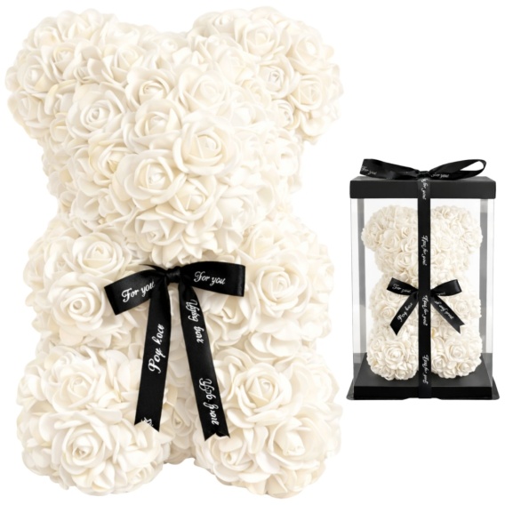 Duży Miś z róż 40cm prezent na Walentynki Dzień Kobiet Urodziny ecru