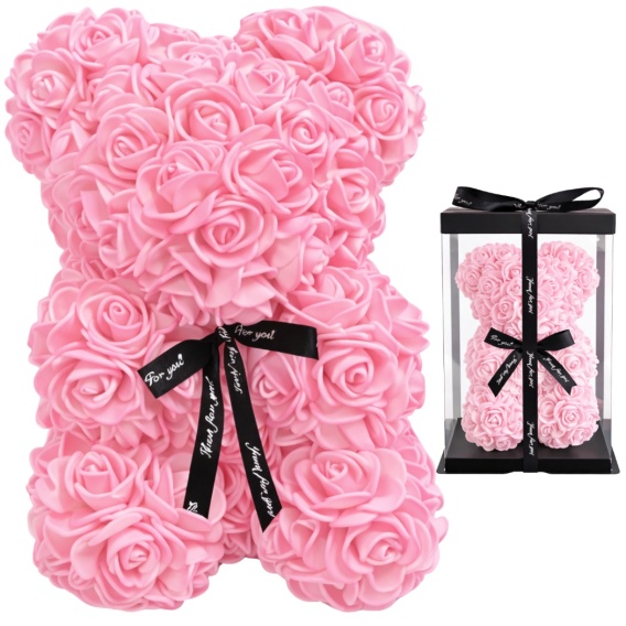 Duży Miś z róż 40cm prezent na Walentynki Dzień Kobiet Urodziny różowy