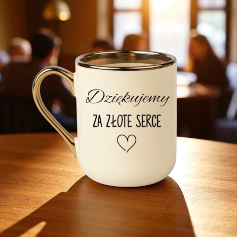 Kubek kremowo-złoty z Twoim nadrukiem tekstem grafiką logo prezent reklama