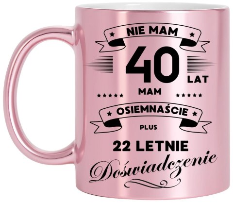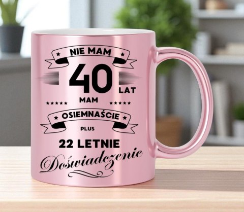 Kubek różowy metalik premium prezent na 40 urodziny oryginalny upominek