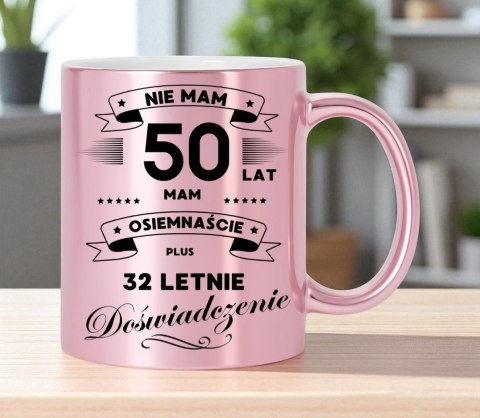 Kubek różowy metalik premium prezent na 50 urodziny oryginalny upominek
