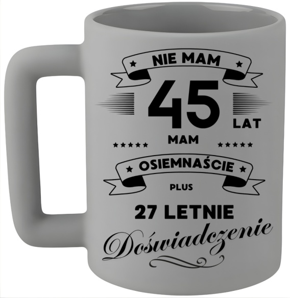 Kubek 400ml DUŻY śmieszny nadruk Prezent z dedykacją na URODZINY 45 lat