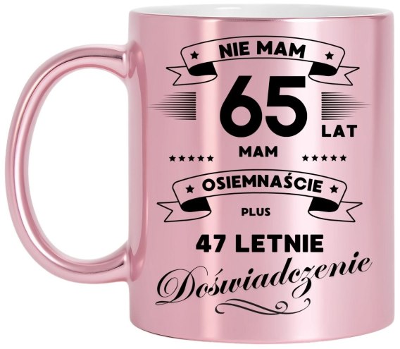 Kubek różowy metalik premium prezent na 65 urodziny oryginalny upominek