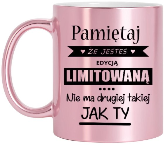 Kubek różowy metalik prezent dla dziewczyny koleżanki żony na różne okazje