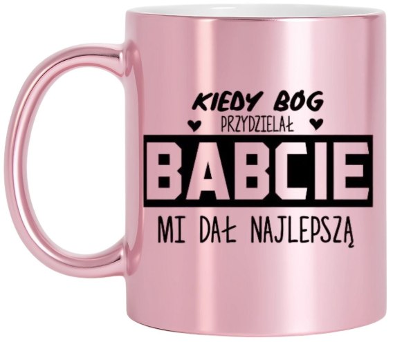 Kubek różowy premium z nadrukiem babcia prezent dla Babci urodziny imieniny