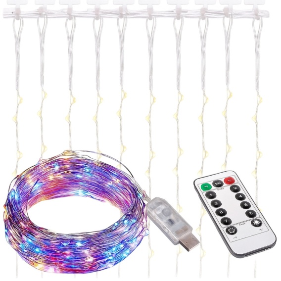 Kurtyna lampki świąteczne 300 LED 3x3m USB multikolor pilot