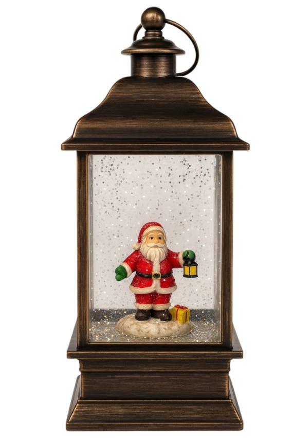 Klasyczna latarnia z wirującym brokatem i oświetleniem LED dająca efekt kuli śnieżnej.
