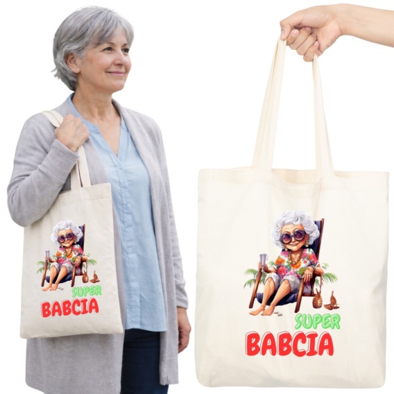 Torba bawełniana Premium z nadrukiem Babcia na zakupy prezent Dzień BABCI