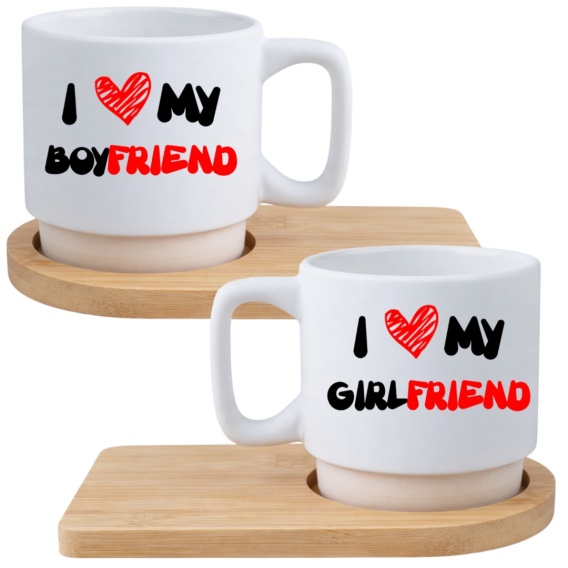 Zestaw 2x filiżanka + podstawki Prezent Dziewczyna Chłopak Walentynki