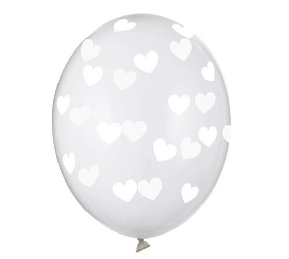 Balony 30 cm serduszka 5szt przezroczyste białe