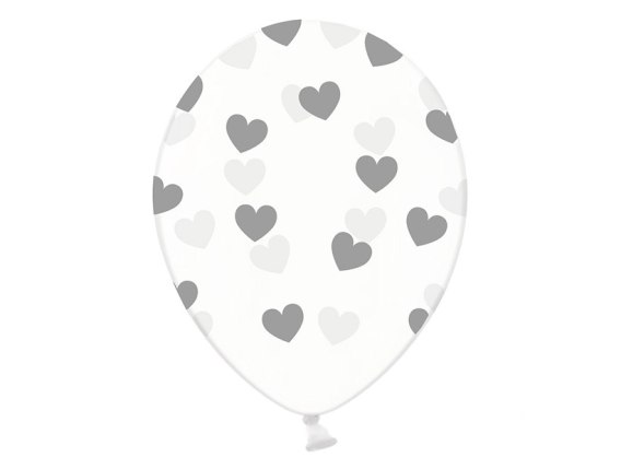 Balony 30 cm serduszka 5szt przezroczyste srebrne
