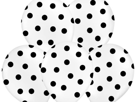 Balony Strong Kropki w kolorze Pastel Pure White, z czarnym, pięciostronnym nadrukiem