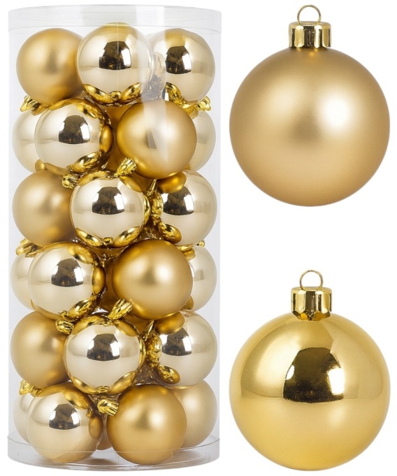 Oferujemy piękny zestaw bombek choinkowych, który składa się z 30 sztuk o średnicy 6 cm.