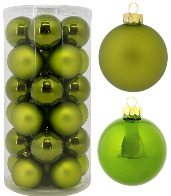 Oferujemy piękny zestaw bombek choinkowych, który składa się z 30 sztuk o średnicy 6 cm.