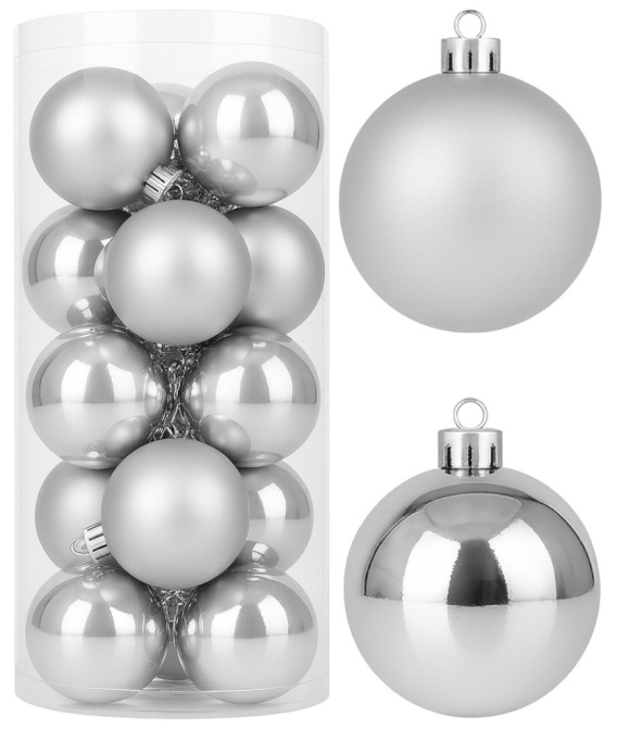Bombki choinkowe 8cm zestaw 15szt ozdoba bombka na choinkę srebrny