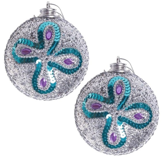 Bombki choinkowe ozdoby świąteczne 9.5cm 2szt srebrny brokat