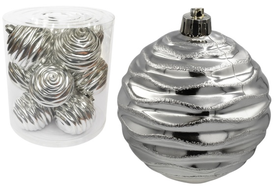 Bombki choinkowe plastikowe fala 8cm 12szt srebrny
