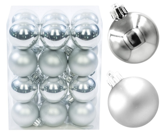 Bombki choinkowe plastikowe ozdoby świąteczne 2,5cm 36szt srebrny