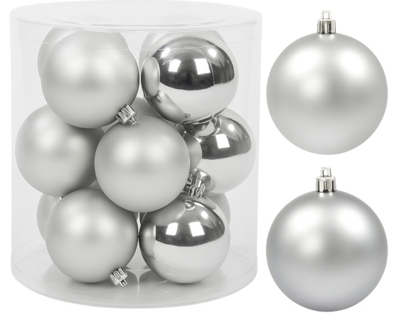 Bombki choinkowe plastikowe ozdoby świąteczne 6cm 12szt srebrny