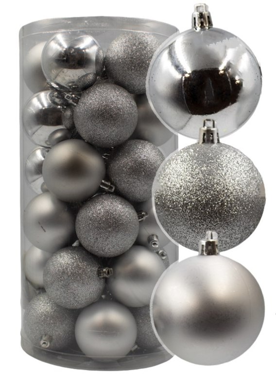 Bombki choinkowe plastikowe ozdoby świąteczne 6cm 30szt srebrny