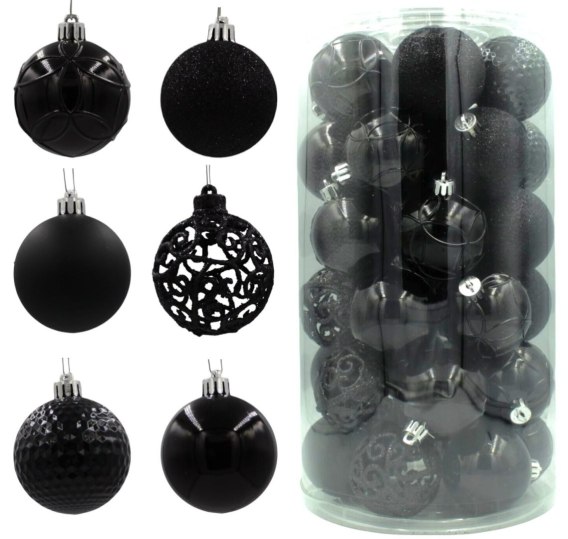 Bombki choinkowe plastikowe ozdoby świąteczne 6cm 36szt czarny