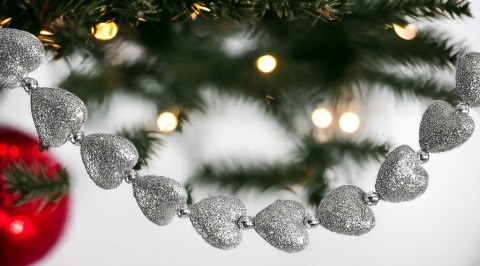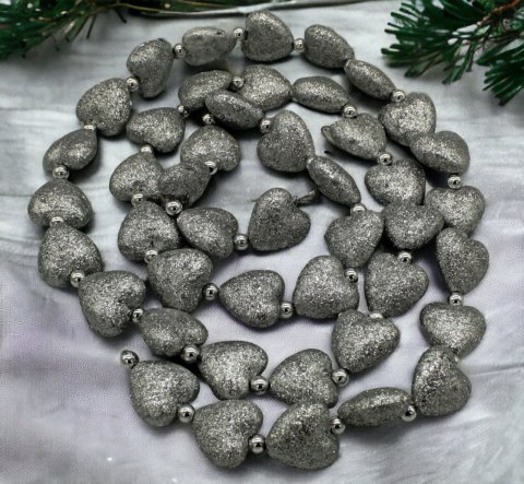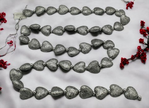 Girlanda choinkowa serca ozdoba na Boże Narodzenie 173cm srebrna