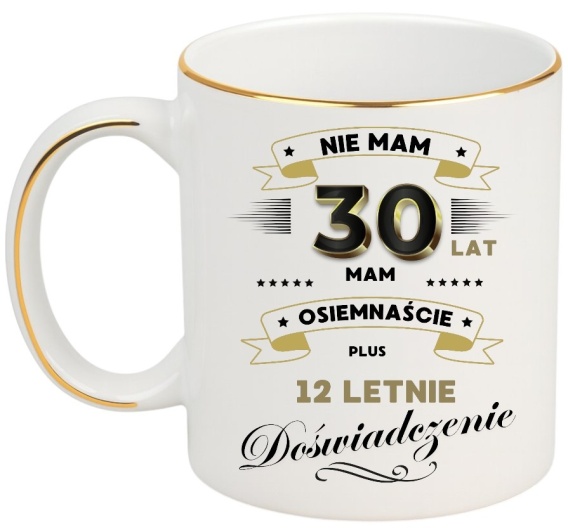 KUBEK PREMIUM NA 30 URODZINY BIAŁO-ZŁOTY ŚMIESZNY PREZENT