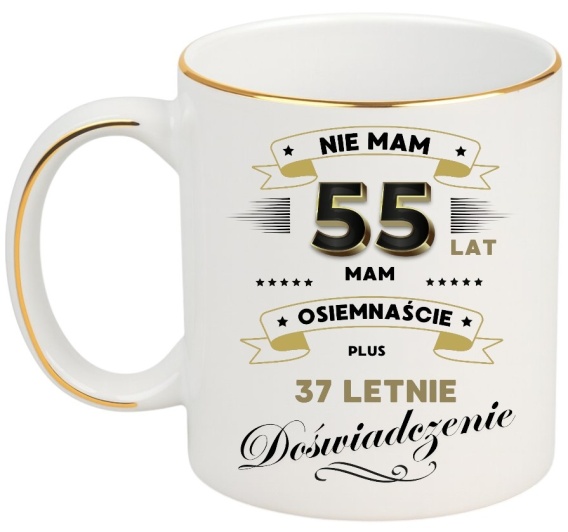 KUBEK PREMIUM NA 55 URODZINY BIAŁO-ZŁOTY ŚMIESZNY PREZENT