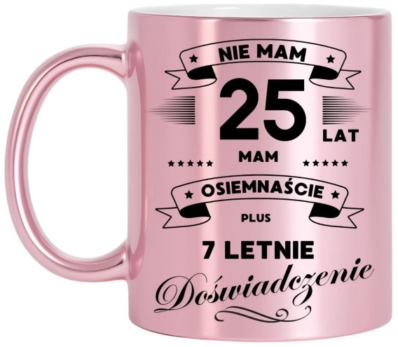 Kubek różowy metalik premium prezent na 25 urodziny oryginalny upominek