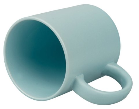 Kubek w kolorze błękitnym z matową powłoką zewnętrzną.