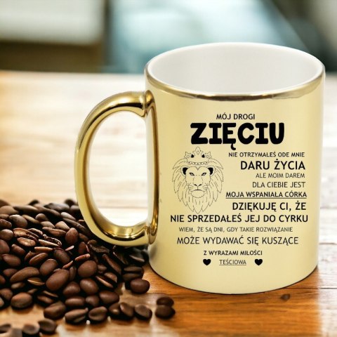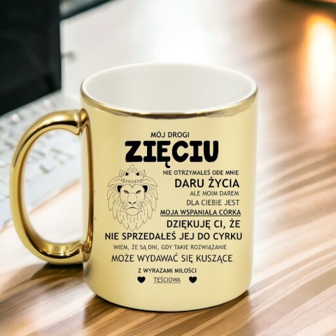 Kubek złoty premium dla zięcia urodziny imieniny śmieszny prezent