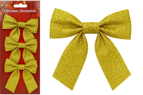 Kokardy na choinkę dekoracja brokat 3szt kokarda złota