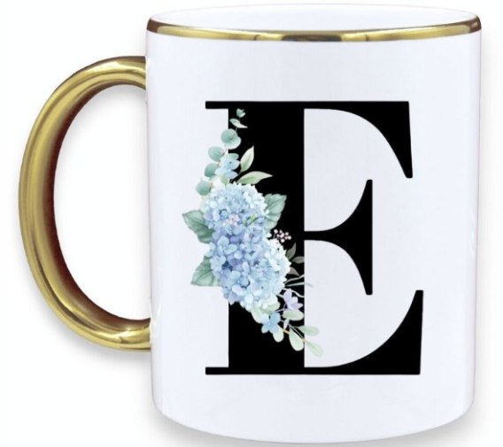 Kubek premium z nadrukiem dowolna litera prezent piękny biało-złoty