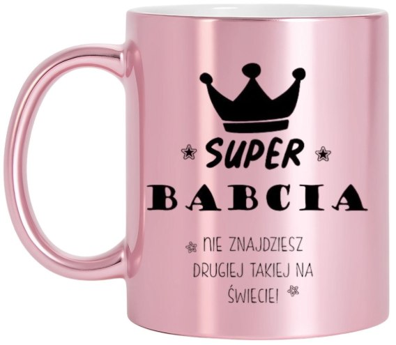 KUBEK RÓŻOWY PREMIUM Z NADRUKIEM BABCIA PREZENT DLA BABCI URODZINY IMIENINY