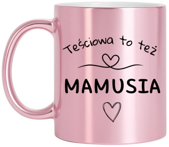 Kubek różowy premium z nadrukiem dla mamy teściowej prezent Dzień Matki