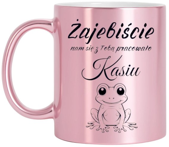 Kubek różowy prezent na pożegnanie koleżanki z pracy z imieniem