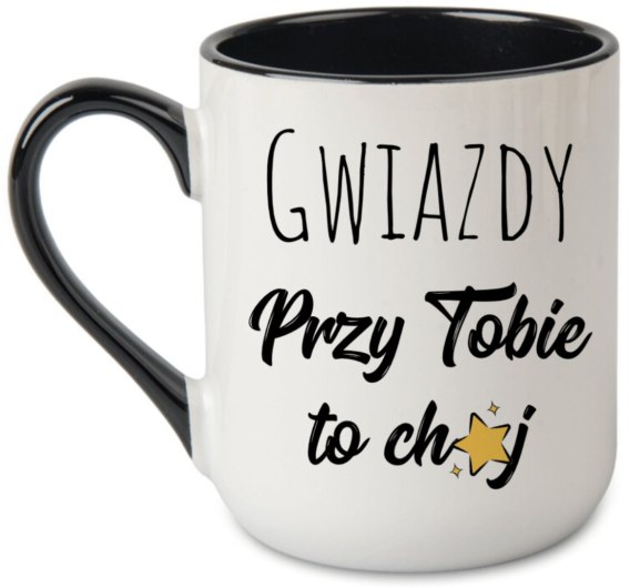 • Kubek w kolorze białym z czarnym uchem i wnętrzem