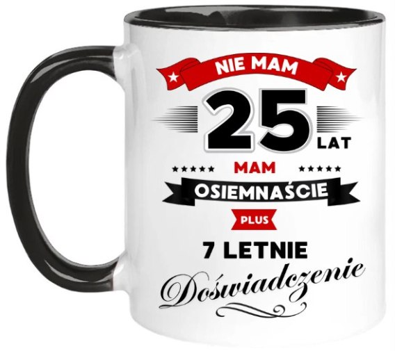 Kubek z nadrukiem śmieszny prezent na 25 urodziny