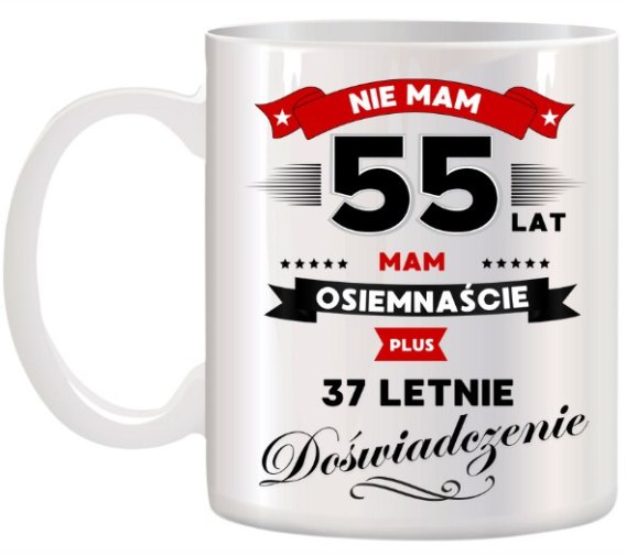Kubek z nadrukiem śmieszny prezent na 55 urodziny oryginalny upominek