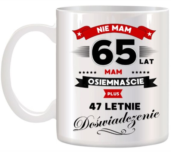 Kubek z nadrukiem śmieszny prezent na 65 urodziny oryginalny upominek
