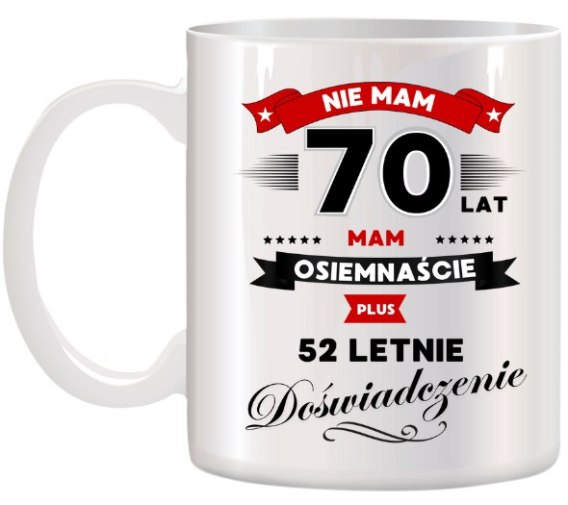 Kubek z nadrukiem śmieszny prezent na 70 urodziny oryginalny upominek