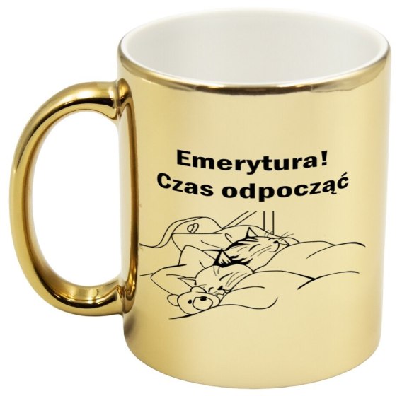 Kubek złoty prezent dla emeryta emerytki pożegnanie w pracy urodziny