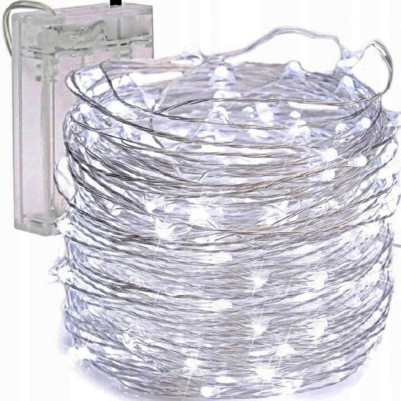 Lampki choinkowe druciki dekoracja 100 LED 10m na baterie biały zimny