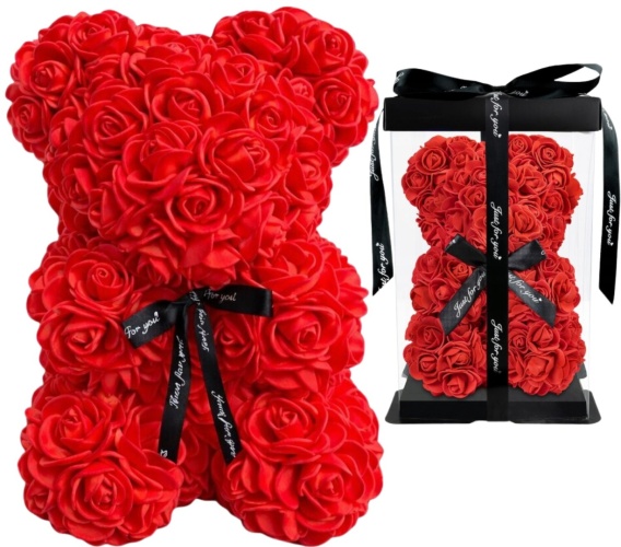 Miś z róż 25cm prezent na Walentynki Dzień Kobiet Urodziny czerwony