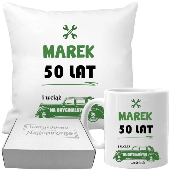 Poduszka i kubek prezent na urodziny 40 50 60 lat dowolny wiek i imię