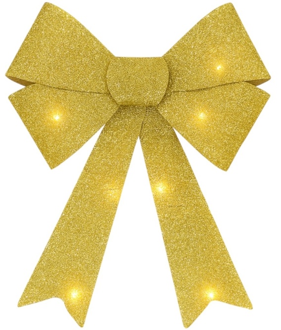 Ta efektowna duża świecąca kokarda o wymiarach 44 x 30 cm to idealna ozdoba, która wprowadzi do Twojego wnętrza wyjątkowy, świąteczny nastrój.