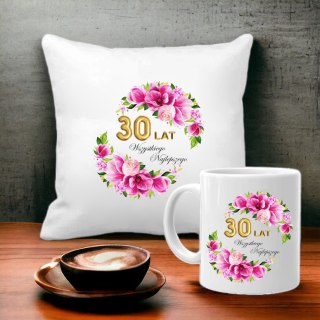 Poduszka i kubek prezent URODZINY 18 30 40 50 60 lat dowolny wiek w pudełku