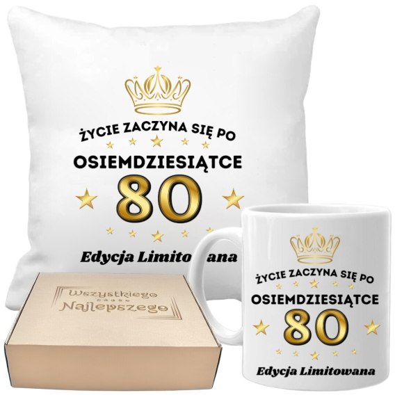Poduszka i kubek prezent na 80 URODZINY zestaw prezentowy w pudełku